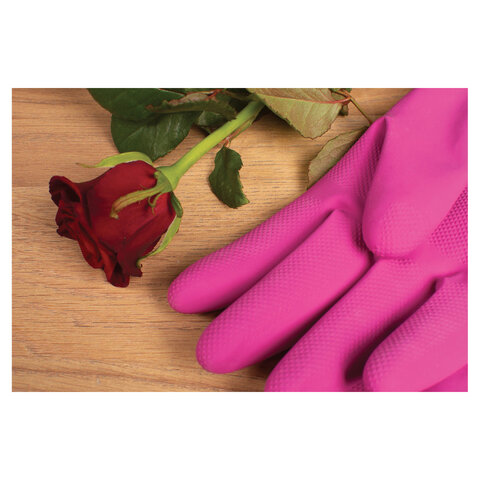 Перчатки МНОГОРАЗОВЫЕ резиновые YORK "Роза", хлопчатобумажное напыление, ПРОЧНЫЕ, размер 7-8, M (средний), розовые, вес 70 г, 92670