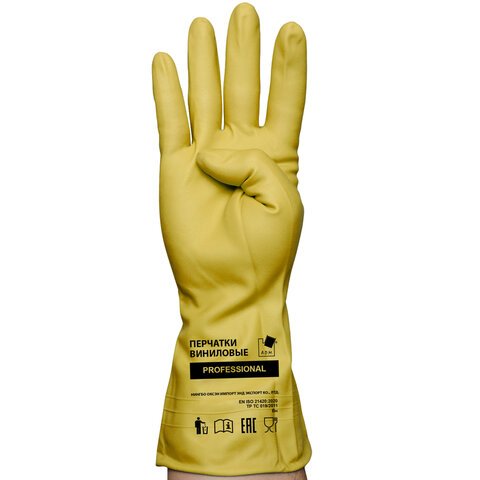 Перчатки МНОГОРАЗОВЫЕ виниловые ЖЕЛТЫЕ усиленные ГИПОАЛЛЕРГЕННЫЕ, ТР ТС, PROFESSIONAL, размер 8-9, L (большой), вес 90 г, ADM, 31161