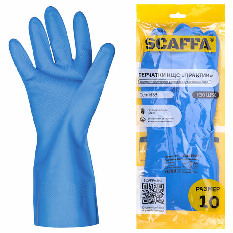 Нитриловые перчатки от химических воздействий SCAFFA Практик КЩС (растворов кислот концентрацией 80%, растворов щелочей концентрацией 50%) с хлопчатобумажным напылением, текстурированной рабочей поверхностью. Безопасны для контакта с пищевыми продуктами.