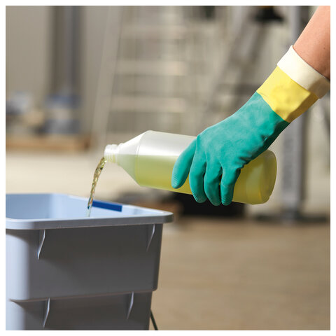 Усиленные 3-слойные латексные перчатки VILEDA с неопреновой обработкой. Прочные, долговечные, а также защищают от вирусов. Идеальны для генеральной уборки с использованием агрессивной химии.