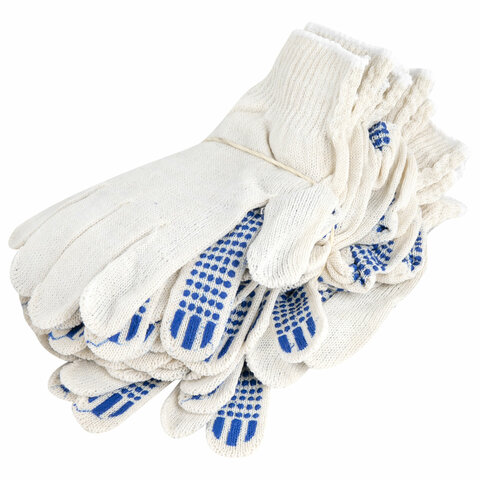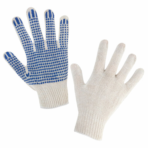 Перчатки хлопчатобумажные эконом, КОМПЛЕКТ 100 пар, 10 класс, 26-28 г, 83 текс, С ПВХ, LAIMA ЭКОНОМ, БЕЛЫЕ, 608680