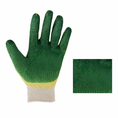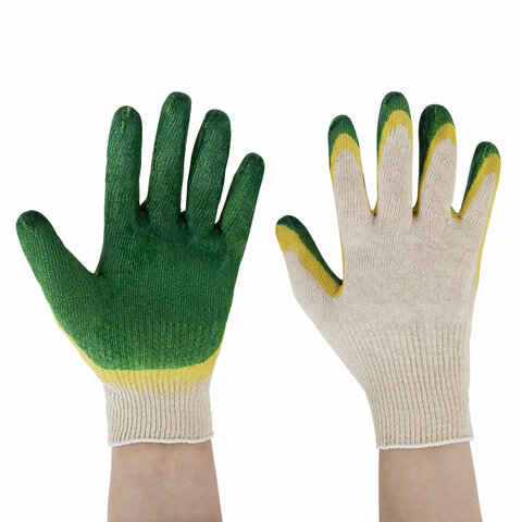Перчатки хлопчатобумажные износостойкие ДВОЙНОЙ облив, 13 класс, КОМПЛЕКТ 100 ПАР, LAIMA ЛЮКС, 608673