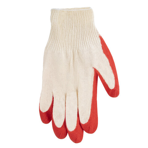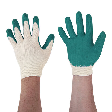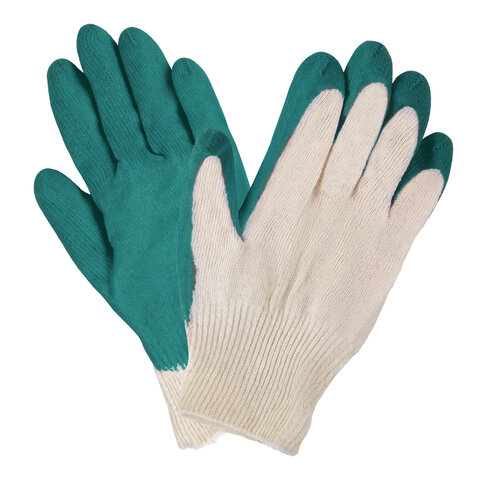 Перчатки трикотажные с одинарным латексным обливом ладони. Обладают высокой прочностью, предназначены для защиты от повреждений острыми углами, порезов арматурой, стеклом, не промокают при работе с влажными материалами (идеальны для укладка плитки).