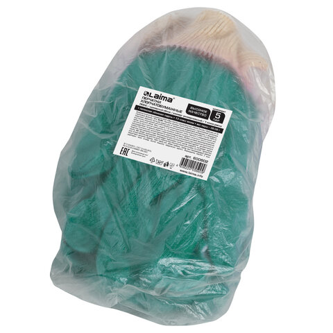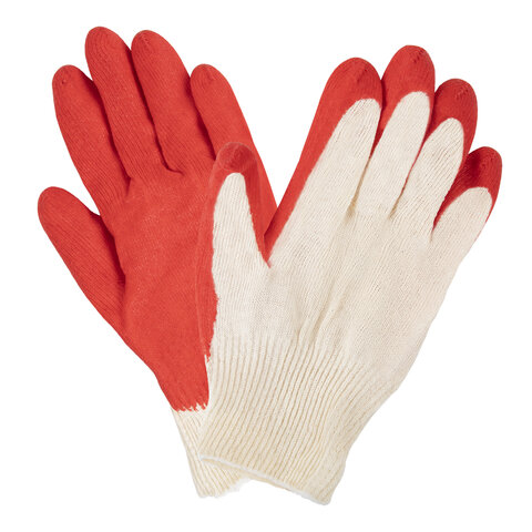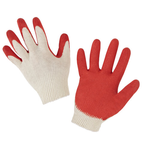 Перчатки хлопчатобумажные, износостойкие ОДИНАРНЫЙ латексный облив, 13 класс, КОМПЛЕКТ 5 ПАР, LAIMA ЛЮКС, 600802