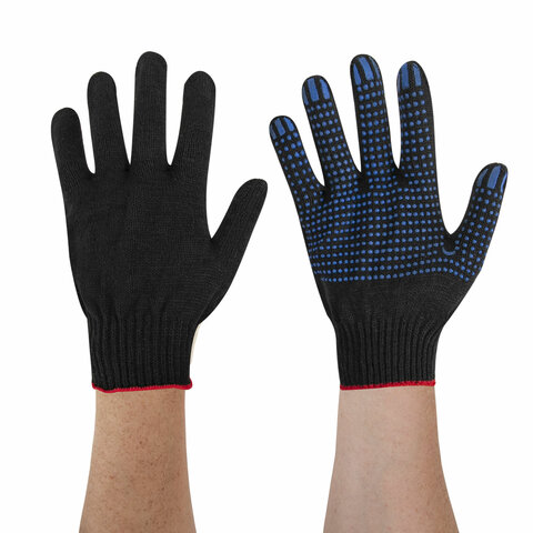 Перчатки хлопчатобумажные, КОМПЛЕКТ 100 ПАР, 10 класс, 40-42 г, 116 текс, ПВХ-точка, LAIMA ЛЮКС ЧЕРНЫЕ, 608677