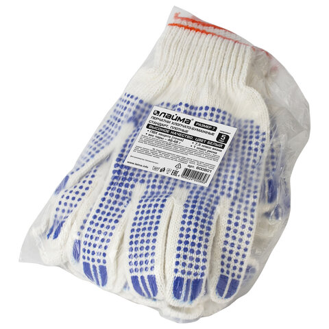 Перчатки хлопчатобумажные, КОМПЛЕКТ 5 ПАР, 7,5 класс, 46-48 г, 166 текс, ПВХ-точка, LAIMA "СТАНДАРТ", БЕЛЫЕ, 600801