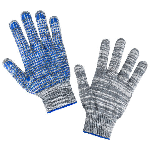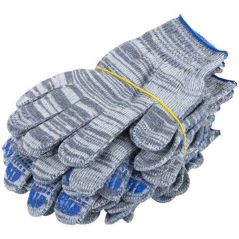 Перчатки хлопчатобумажные плотные, КОМПЛЕКТ 100 ПАР, 10 класс, 50-52 г, 133 текс, ПВХ-точка LAIMA ЛЮКС 2, СЕРЫЕ, 608679