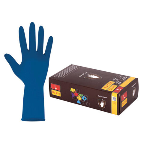Перчатки латексные смотровые 25 пар (50 штук), размер 8-9, L (большой), синие, SAFE&CARE High Risk DL/TL210
