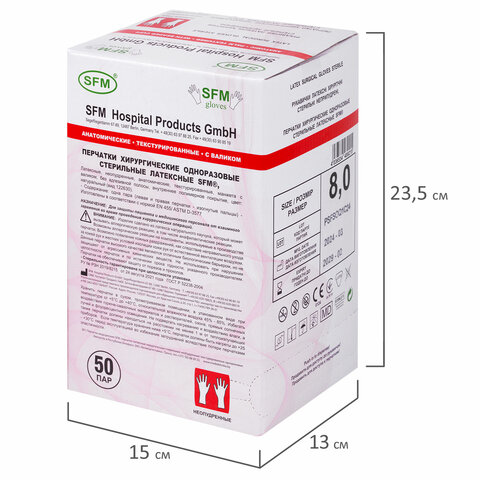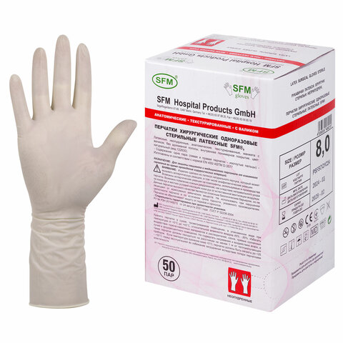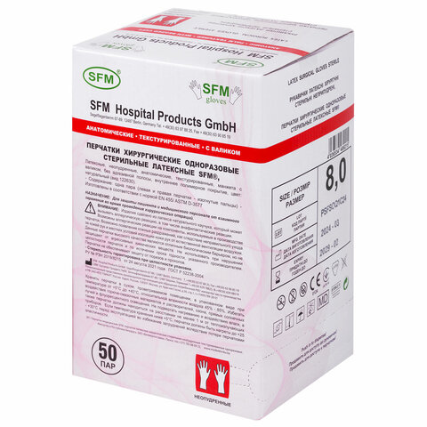 Перчатки хирургические SFM предназначены для дополнительной защиты пациентов и пользователей во время медицинской операции, биологических исследований, осмотра в стоматологическом кабинете.