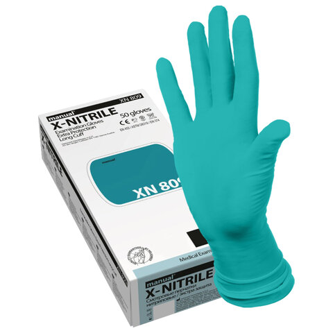 Перчатки нитриловые смотровые особо прочные удлиненные MANUAL XN809, Австрия, 25 пар (50 шт.), размер S (малый), XN809-01