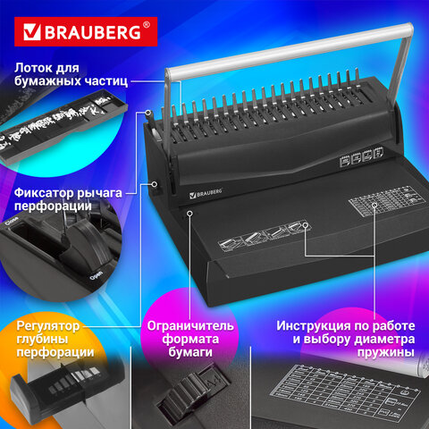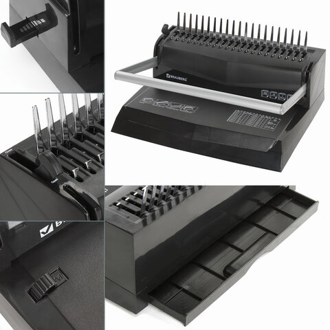 Переплетная машина для пластиковой пружины BRAUBERG B12, пробивает до 12 листов, сшивает до 450 листов, 530959