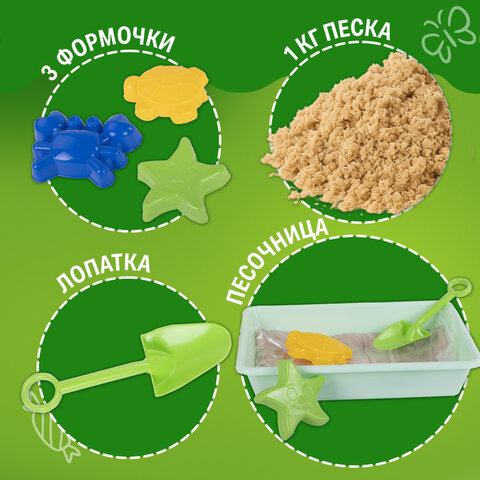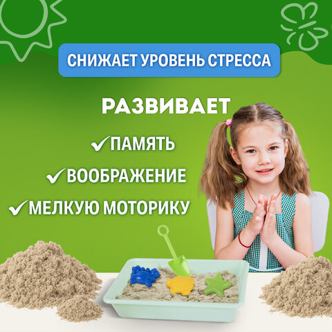 Наборы кинетического умного песка BRAUBERG KIDS предназначены для развития мелкой моторики, креативности и творческих способностей. Песок безопасен, не оставляет пятен на руках и одежде, хорошо держит форму поделки. Песочница и формочки в каждом наборе.