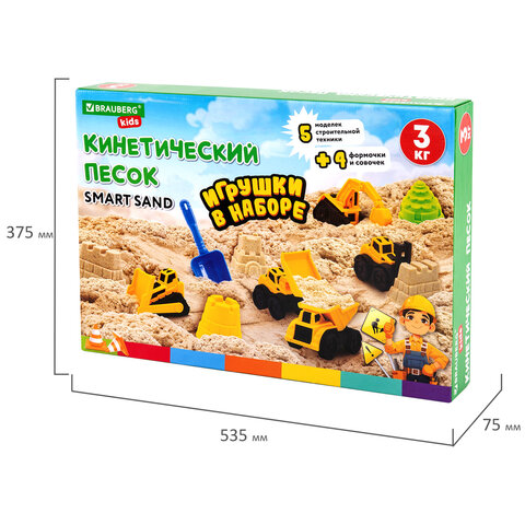 Набор кинетического песка 3 кг, "ВЕСЕЛАЯ СТРОЙКА", песочница, игрушки, формочки, BRAUBERG KIDS, 666210