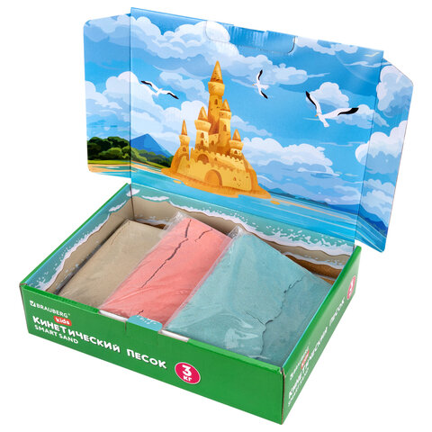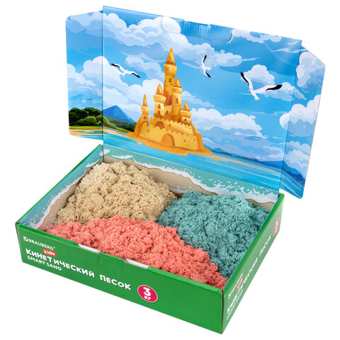 Песок для лепки кинетический, 3 цвета, 3 кг, коробка-песочница, BRAUBERG KIDS, 666009