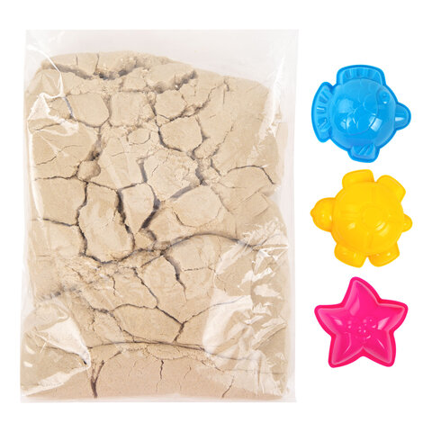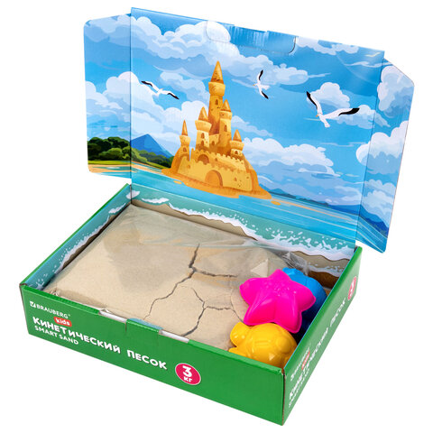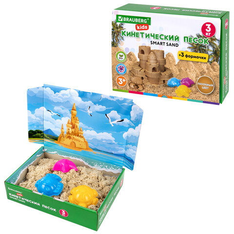 Песок для лепки кинетический, цвет песочный, 3 кг, коробка-песочница, формочки, BRAUBERG KIDS, 666008