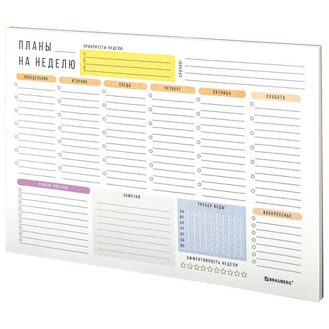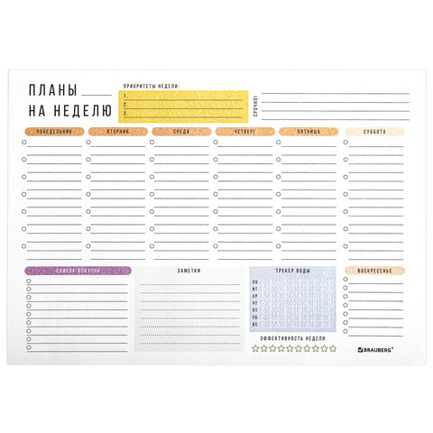 Стильный и универсальный блокнот-планер BRAUBERG с отрывными листами станет незаменимым помощником в планировании своей недели.