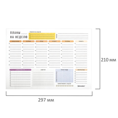 Блокнот-планер НА НЕДЕЛЮ недатированный отрывной с подложкой, 52 л., А4, 297х210 мм, BRAUBERG, 114217