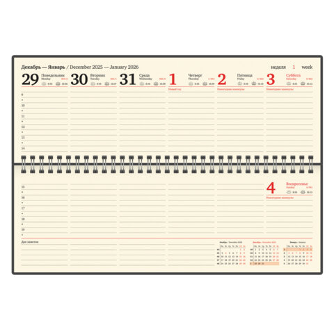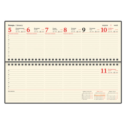 Планинг датированный 2026 305х140 мм BRAUBERG "Comodo", под кожу, черный, 117223