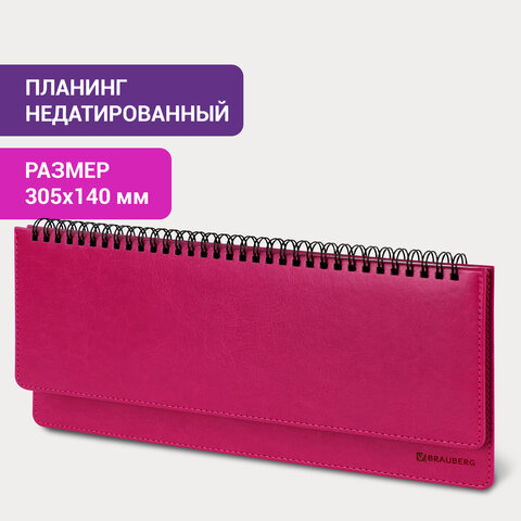 Планинг настольный недатированный (305x140 мм) BRAUBERG "Rainbow", кожзам, 60 л., розовый, 111699