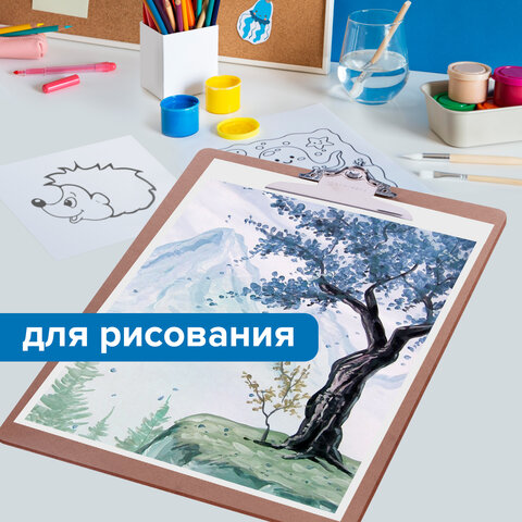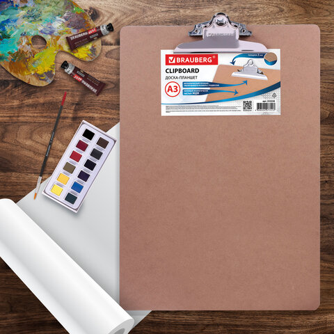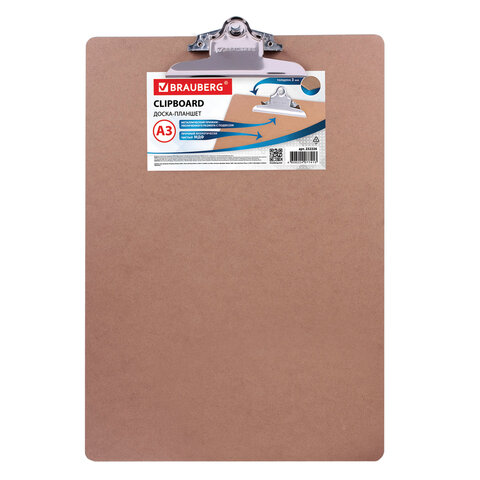 Доска-планшет БОЛЬШОГО ФОРМАТА (320х460 мм), А3, BRAUBERG "Eco" с прижимом, МДФ, 3 мм, СВЕТЛО-КОРИЧНЕВАЯ, 232226