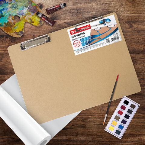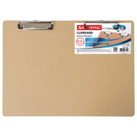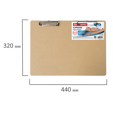 Доска-планшет БОЛЬШОГО ФОРМАТА (440х320 мм), А3, BRAUBERG "Eco" с двумя прижимами, МДФ, 3 мм, 232227