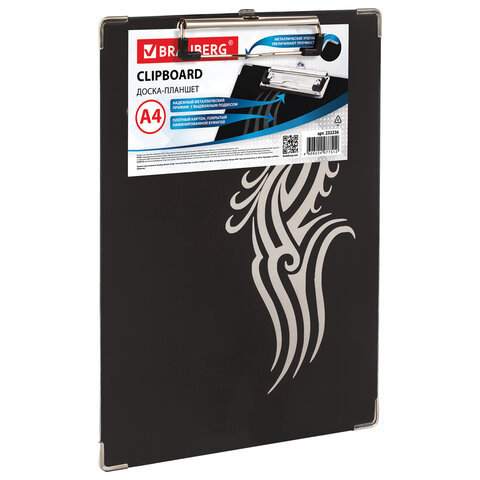 Доска-планшет BRAUBERG "Black Jack" с прижимом А4 (226х315 мм), картон/ламинированная бумага, ЧЕРНАЯ, 232236