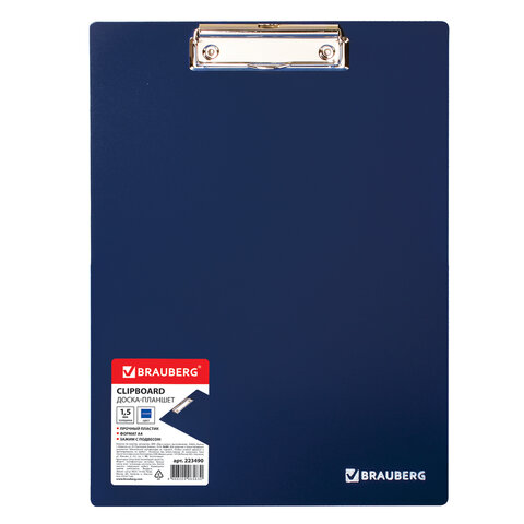 Доска-планшет BRAUBERG "Contract" с прижимом А4 (313х225 мм), пластик, 1,5 мм, СИНЯЯ, 223490