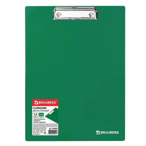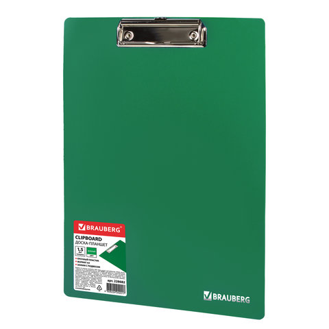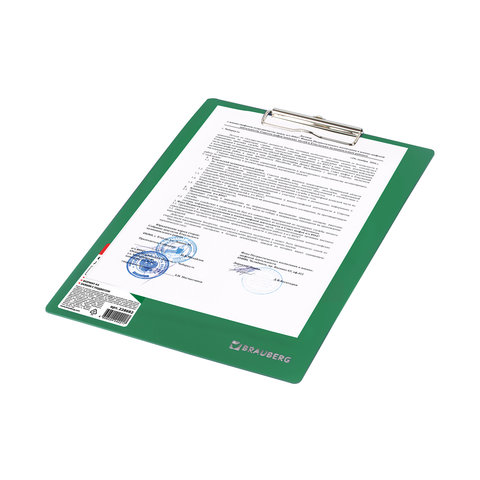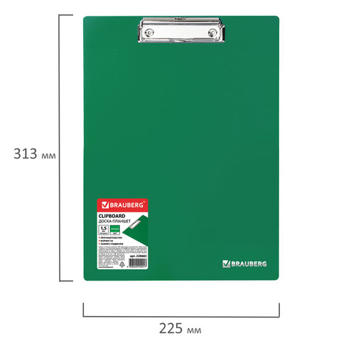 Доска-планшет BRAUBERG "Contract" с прижимом А4 (313х225 мм), пластик, 1,5 мм, ЗЕЛЕНАЯ, 228682