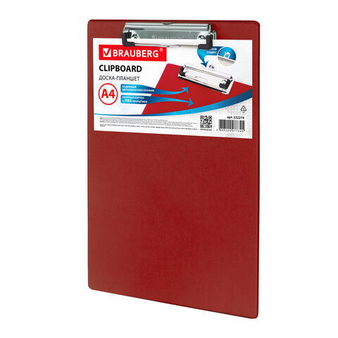 Доска-планшет BRAUBERG "NUMBER ONE" с прижимом А4 (228х318 мм), картон/ПВХ, БОРДОВАЯ, 232219