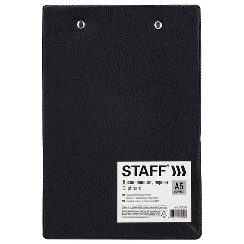 Доска-планшет МАЛЫЙ ФОРМАТ (158х230 мм), А5, STAFF, с прижимом, картон/ПВХ, ЧЕРНАЯ, 229556