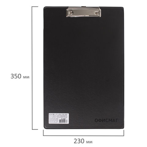 Доска-планшет ОФИСМАГ с прижимом А4 (230х350 мм), картон/ПВХ, РОССИЯ, ЧЕРНАЯ, 225986
