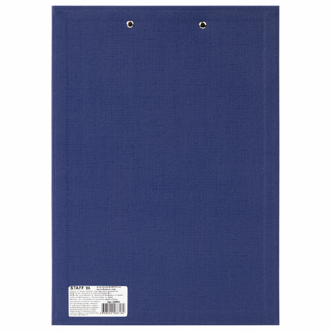 Доска-планшет STAFF "EVERYDAY" с прижимом А4 (225х316 мм), картон/бумвинил РОССИЯ, синяя, 229052