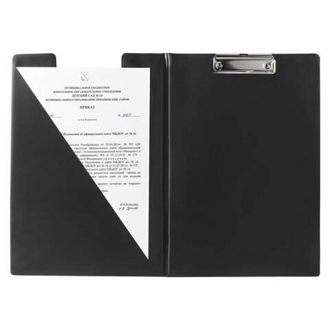 Папка-планшет ОФИСМАГ, А4 (340х240 мм), с прижимом и крышкой, картон/ПВХ, РОССИЯ, черная, 225982
