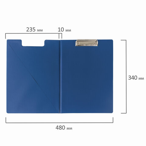 Папка-планшет ОФИСМАГ, А4 (340х240 мм), с прижимом и крышкой, картон/ПВХ, РОССИЯ, синяя, 225983