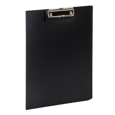 Папка-планшет STAFF, А4 (310х230 мм), с прижимом и крышкой, пластик, черная, 0,5 мм, 229221