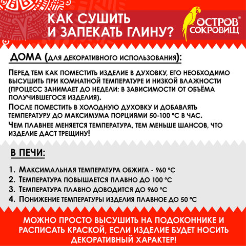 Экологически чистая кембрийская глина ОСТРОВ СОКРОВИЩ, добываемая в России на Чкаловском месторождении, идеально подойдет для художественной и скульптурной лепки. Способствует развитию мелкой моторики, творческих способностей и пространственного мышления.