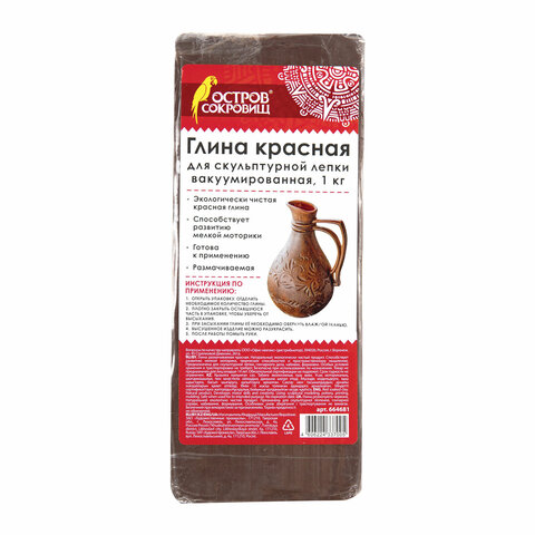Экологически чистая красная глина ОСТРОВ СОКРОВИЩ идеально подойдет для скульптурной лепки, гончарного дела, набивки, формовки. Способствует развитию мелкой моторики, творческих способностей и пространственного мышления.