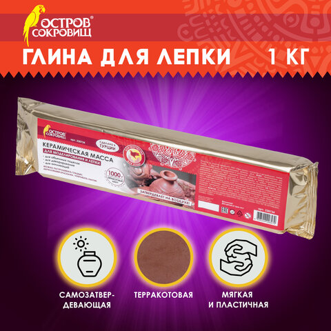 Масса керамическая для лепки ОСТРОВ СОКРОВИЩ, 1000 г, терракотовая, 228734