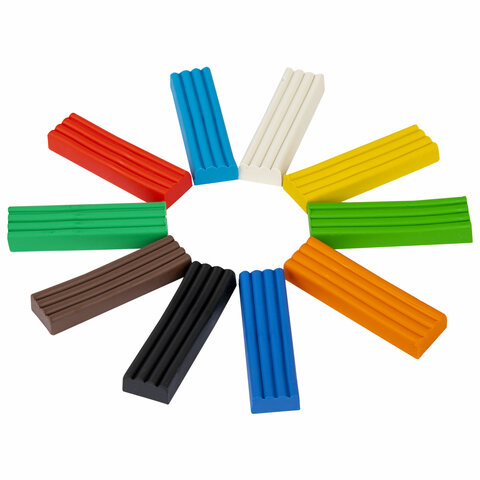 Пластилин классический BRAUBERG "АКАДЕМИЯ КЛАССИЧЕСКАЯ", 10 цветов, 200 г, стек, ВЫСШЕЕ КАЧЕСТВО, 106503