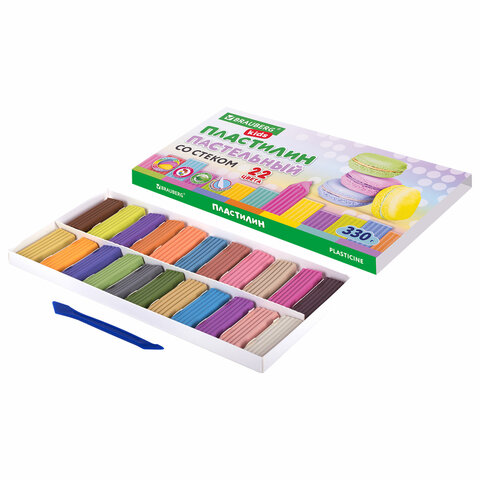 Пластилин классический пастельные цвета BRAUBERG KIDS, 22 цвета, 330 грамм, стек, 106682