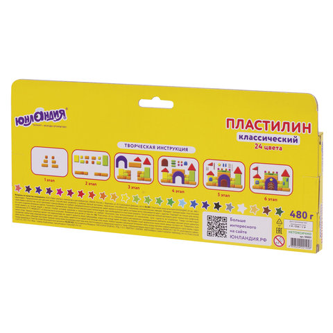 Пластилин классический ЮНЛАНДИЯ "ЮНЛАНДИК-АРХИТЕКТОР", 24 цвета, 480 г, ВЫСШЕЕ КАЧЕСТВО, 105031
