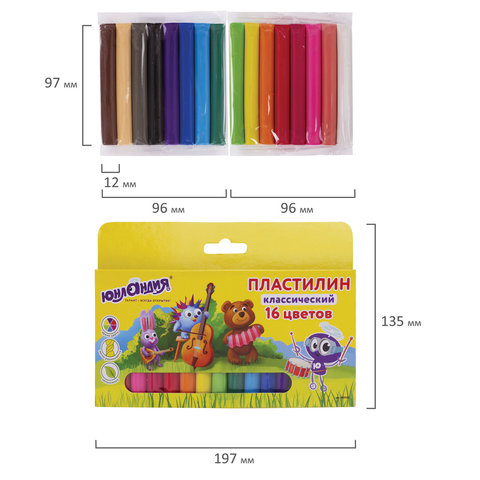 Пластилин классический ЮНЛАНДИЯ "ЮНЛАНДИК-МУЗЫКАНТ", 16 цветов, 320 г, ВЫСШЕЕ КАЧЕСТВО, 105030