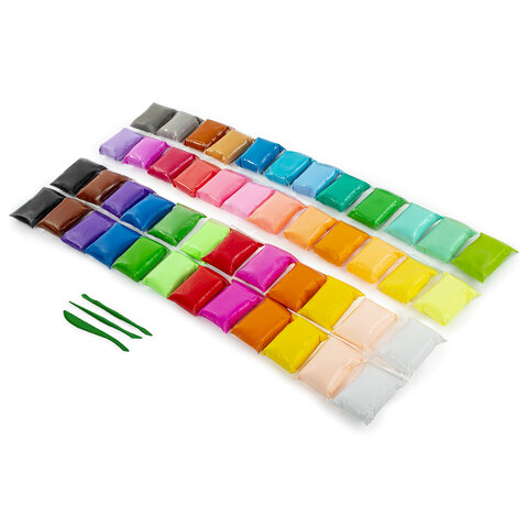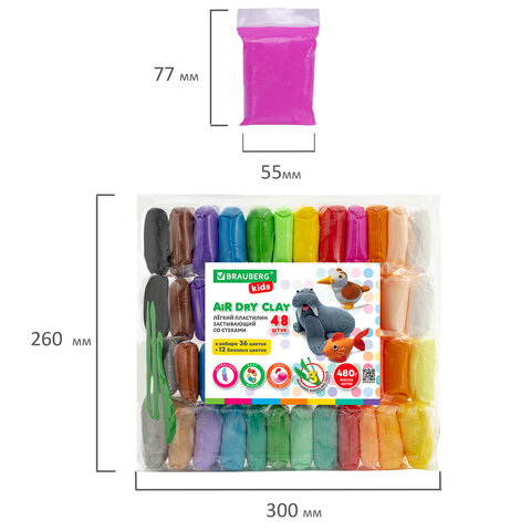 Пластилин супер лёгкий воздушный застывающий 48 шт. (36 цветов + 12 базовых), 480 г, 3 стека, BRAUBERG KIDS, 106310