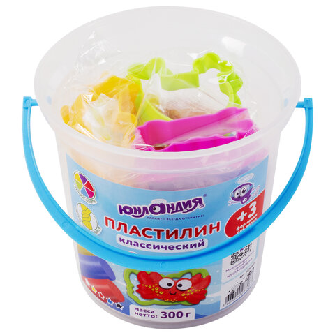 Пластилин в ведерке ЮНЛАНДИЯ "ПОДВОДНЫЙ МИР", 5 цветов, 300 г, 3 формочки, ВЫСШЕЕ КАЧЕСТВО, 105860