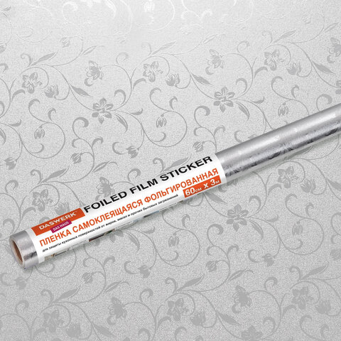Самоклеящаяся пленка, алюминиевая фольга защитная для кухни/дома, 0,6х3 м, серебро, цветы, DASWERK (ДАСВЕРК), 607849