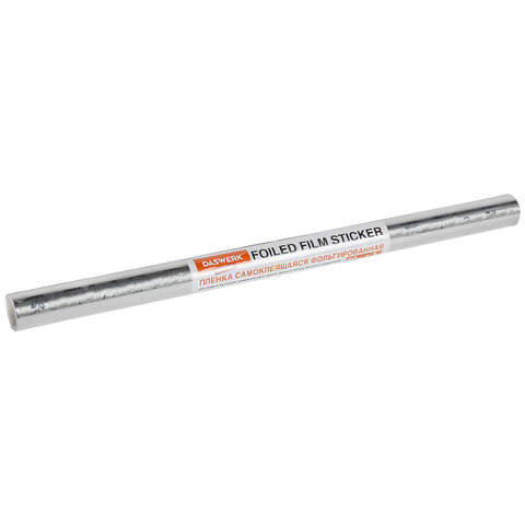 Самоклеящаяся плёнка DASWERK из прочного композитного материала с содержанием алюминия не впитывает воду, масла, жиры и эффективно используется в качестве защитного или декоративного покрытия для кухни и других рабочих зон.