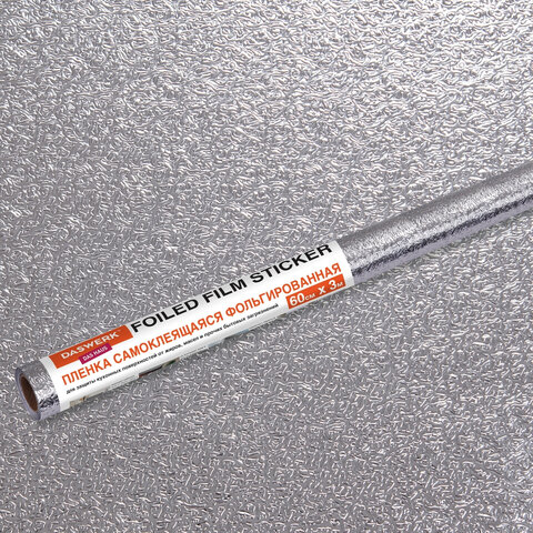 Самоклеящаяся пленка, алюминиевая фольга защитная для кухни/дома, 0,6х3 м, серебро, узор, DASWERK (ДАСВЕРК), 607846