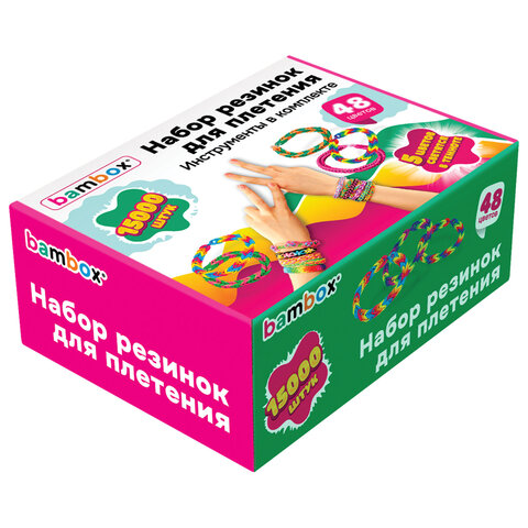 Набор резинок для плетения украшений 15 000 шт., 48 цветов, BAMBOX (БАМБОКС), 665974
