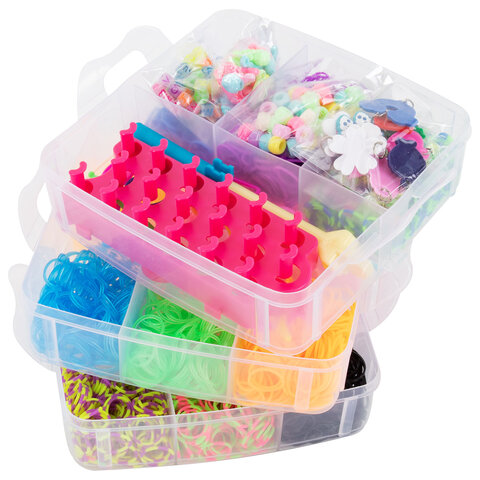 Набор резинок для плетения украшений 3 000 шт., 15 цветов, бокс, бусины, станок, BAMBOX (БАМБОКС), 665976