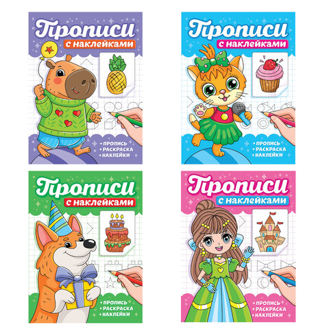 Прописи с наклейками, АССОРТИ, 165х225 мм, 16 стр., ПП